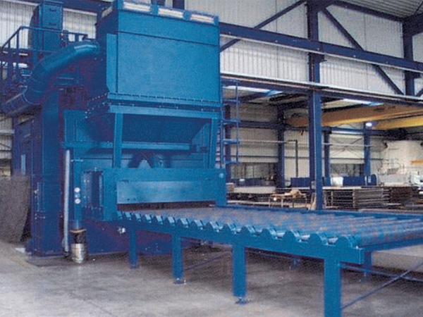 常規鋼板預處理拋丸清理機包含:鋼板拋丸機處理線、噴漆烘干設備等幾部分組成,采用輥道輸送,根據鋼板寬幅定制拋丸器排布,其中我公司在拋丸設備的開發過程中總結了國內國家設備用戶使用情況,針對鋼丸的回收部分,特別加裝刮板及滾掃,鋼丸回收率高,損耗低。 此類非標設備的開發對企業的研發能力要求較高,同時也非?简炂髽I的生產能力,由于大部分工作需在客戶現場完成組裝,因此前期的生產精度要求非常高,若偏差大,客戶現場組裝過程非常麻煩,因此工廠對此類設備的生產經驗尤為重要。前期跟客戶溝通場地安裝等問題,并根據客戶要求出具地基圖紙,后續生產中,板材的裁切、焊接、零部件的拼裝應在經驗豐富的生產工人手中實現。確?蛻衄F場的0誤差。 鋼板預處理拋丸清理設備是大型船廠、鋼結構廠家的必備設備,設備自動化程度高,生產量大。